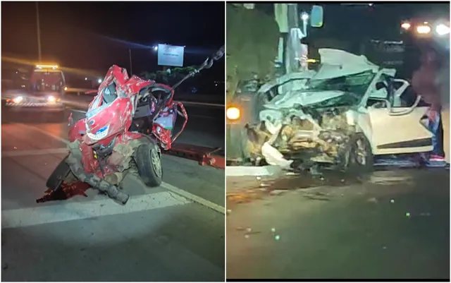 Caminhão perde freios e deixa dois carros completamente destruídos na BR-153