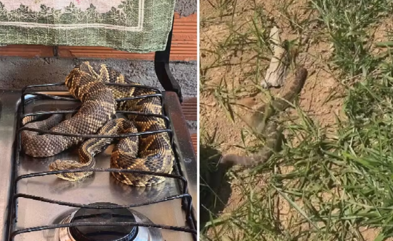 Cascavel é encontrada em cima do fogão de casa em Goiás