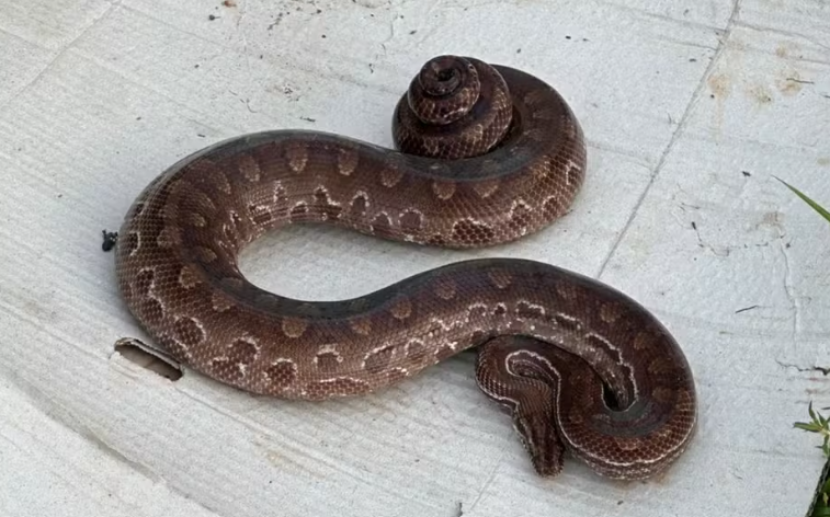 Jiboia ‘arco-íris’ é encontrada em quintal de casa