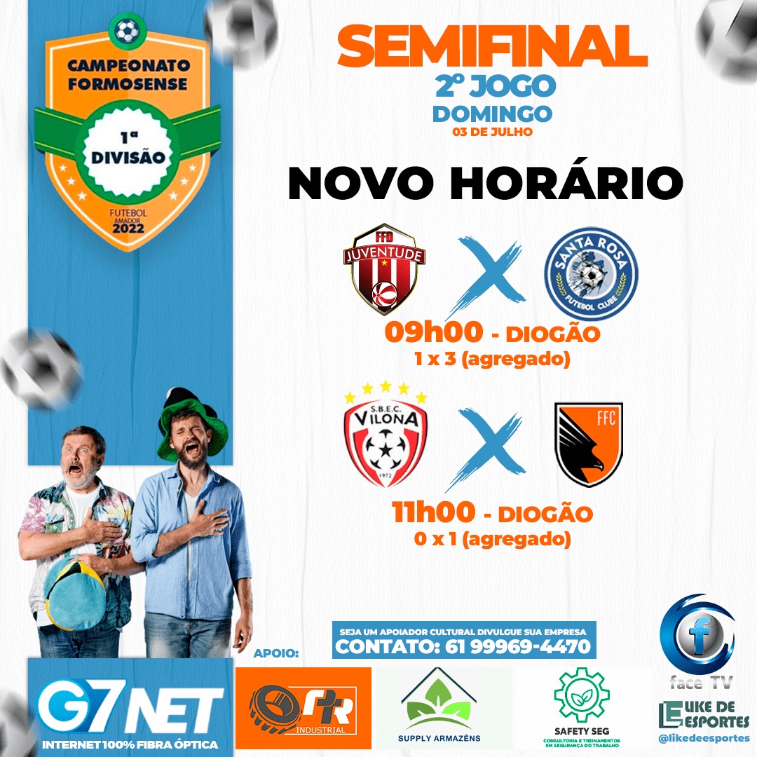 Os Jogos de ida desses confrontos serão definidos em dois jogos. As equipes da Formosinha e Santa Rasa largaram na frente nesses confrontos. A equipe da Formosinha venceu a equipe da Vila pelo placar mínimo, já a equipe do Santa Rosa – atual campeão da competição – venceu a equipe do Juventude e leva uma vantagem maiúscula para o próximo confronto