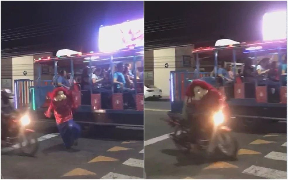 ‘Fofão’ é atropelado por moto ao descer de carreta furacão em Caldas Novas;