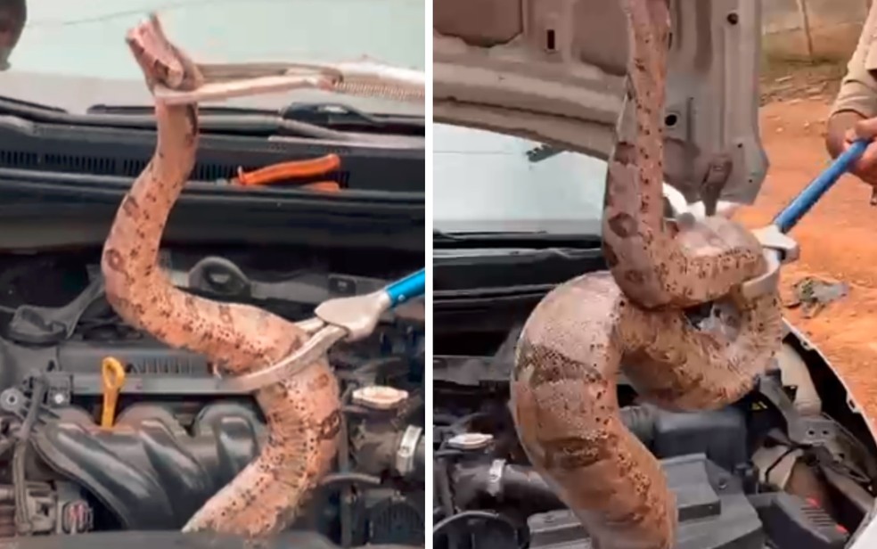 Bombeiros resgatam cobra de quase 2 metros de comprimento em motor de carro