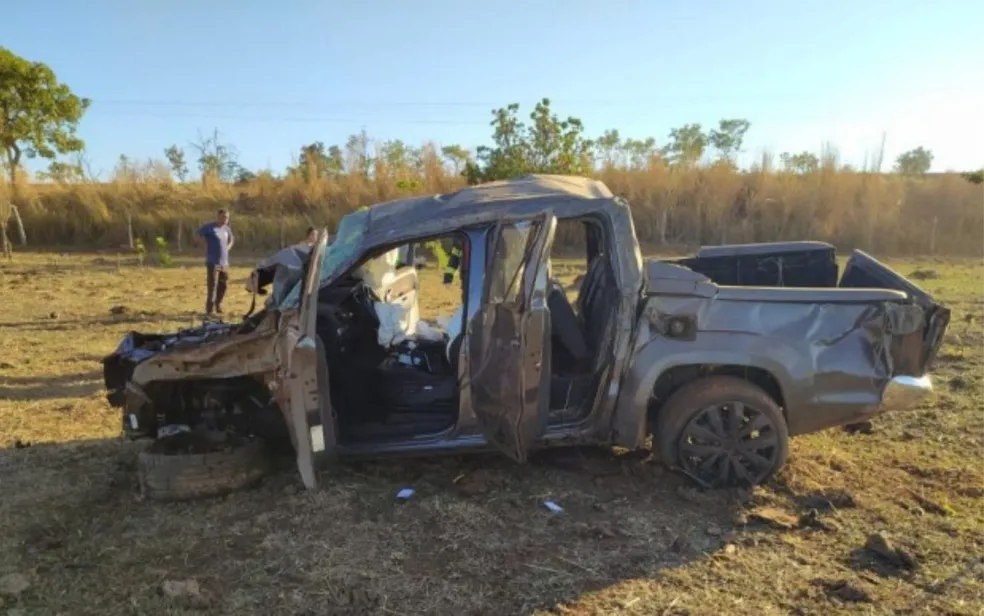 Homem morre e jovem fica ferida após caminhonete capotar na GO-010