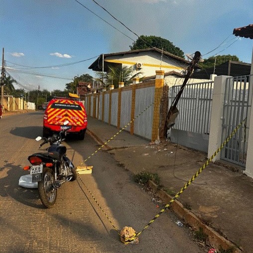 Moto é atingida por fiação elétrica após queda de poste no Setor Nordeste