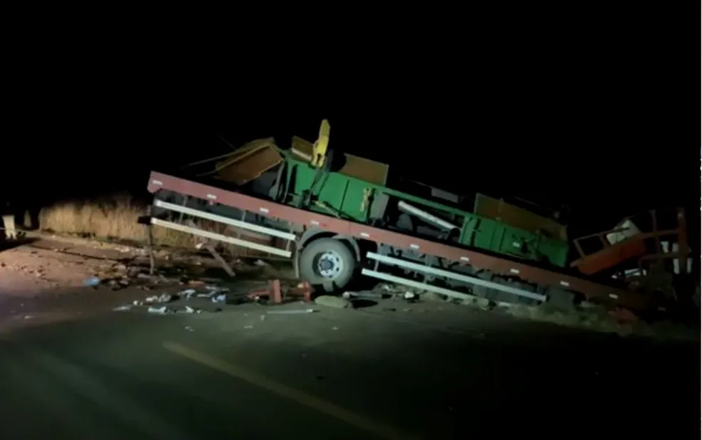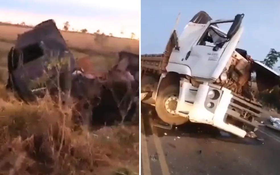 Motorista e passageiro morrem após caminhão invadir pista e bater contra carreta na BR-070