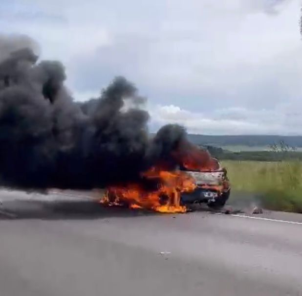 Agora: carro pega fogo na saída de Formosa sentido Brasília