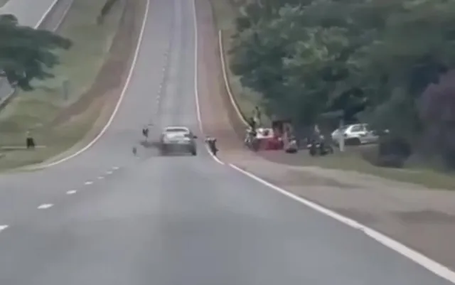 Motociclista pilota na posição ‘superman’ e sofre acidente ao atingir carro na BR-153