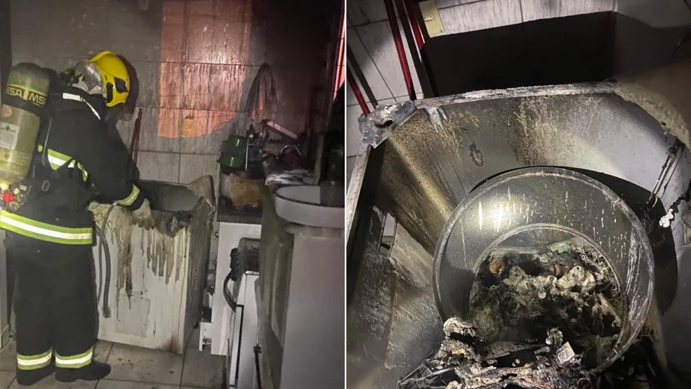 Máquina de lavar roupas pega fogo em apartamento sem morador