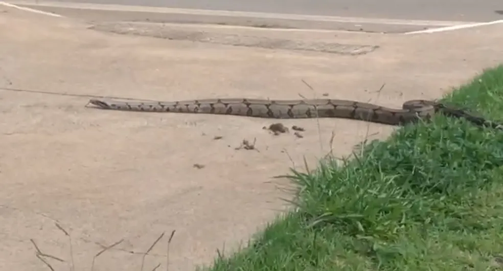 Jiboia é encontrada em gramado em frente à loja no SIA, no DF