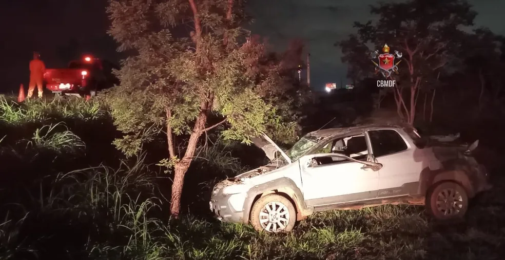 Carro capota e deixa duas pessoas feridas no Paranoá, no DF