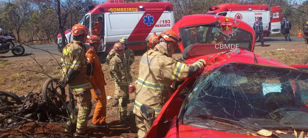 Batida entre carro e moto deixa dois mortos e quatro feridos em Planaltina, no DF