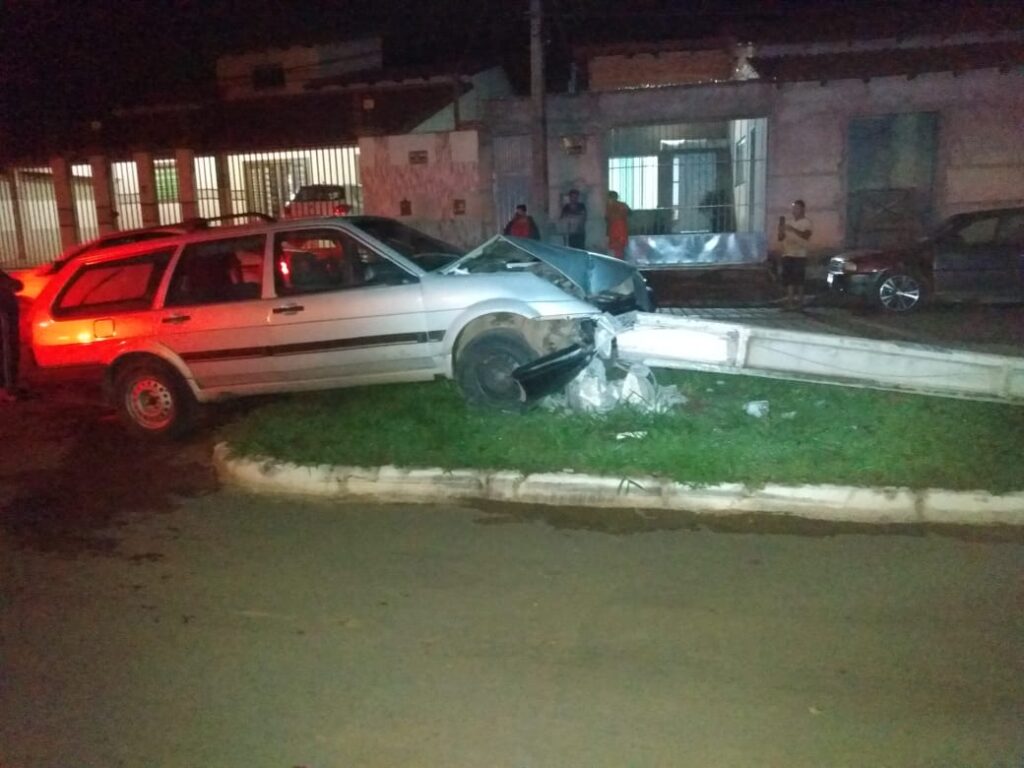 Veículo desgovernado atinge poste em canteiro central da Avenida Circular do Jardim Oliveira