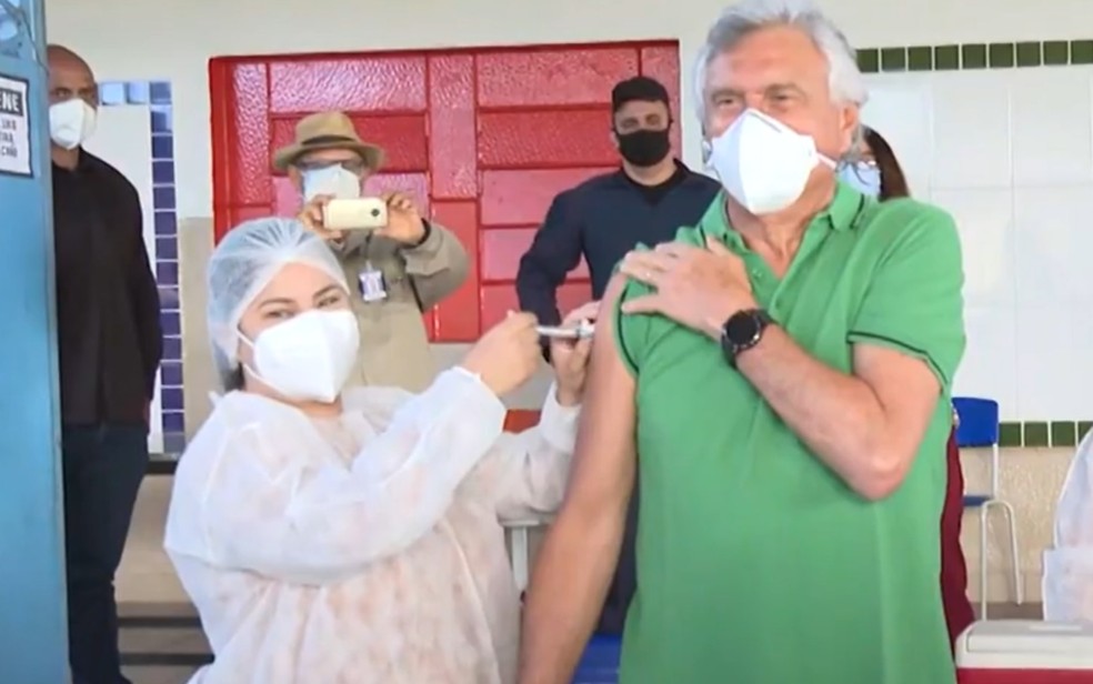Caiado recebe 2ª dose de vacina contra Covid-19 em Goiânia