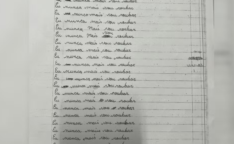 Após descobrir que filha escondeu celular furtado, mãe coloca adolescente para escrever repetidamente: ‘Eu nunca mais vou roubar’