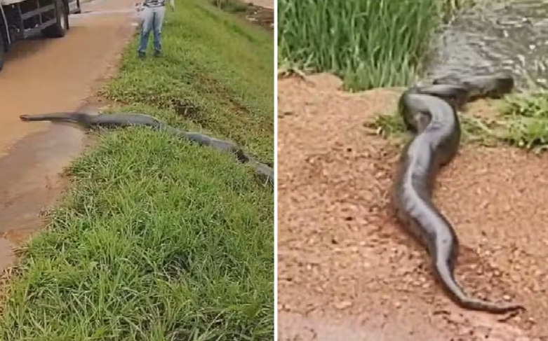 Motoristas Param para Sucuri Gigante Atravessar Rodovia em Goiás