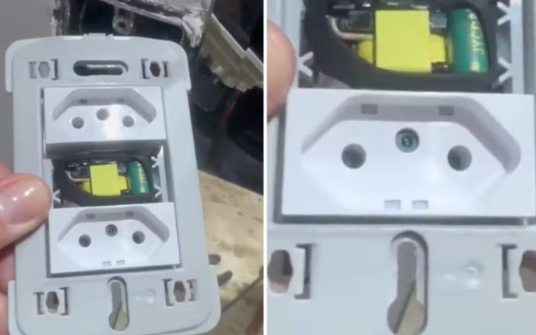 Casal encontra câmera escondida dentro de tomada em quarto de motel