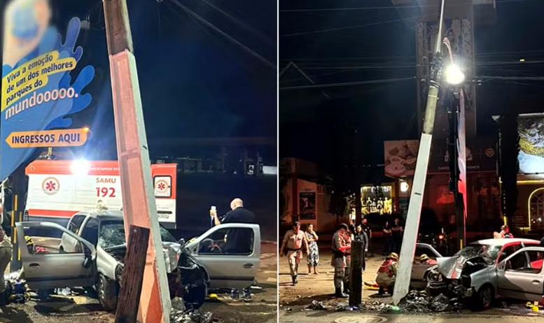 Mulher Morre e Duas Pessoas Ficam Gravemente Feridas Após Carro Bater em Poste em Caldas Novas