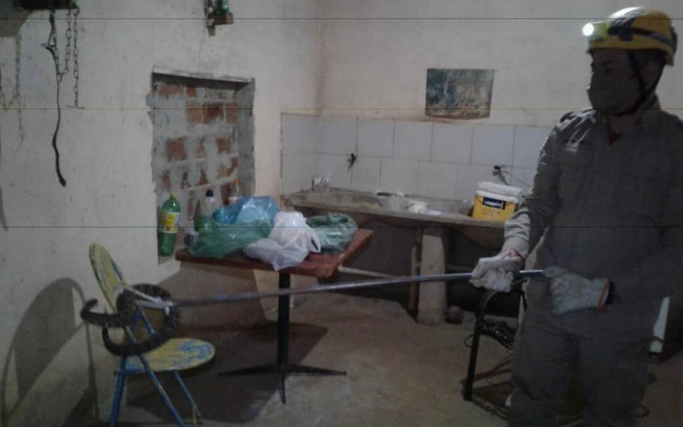 A serpente foi resgatada por volta das 20h da última terça-feira (20). Conforme a corporação, os militares utilizaram uma pinça especial para manuseio de ofídios para capturar a cobra.