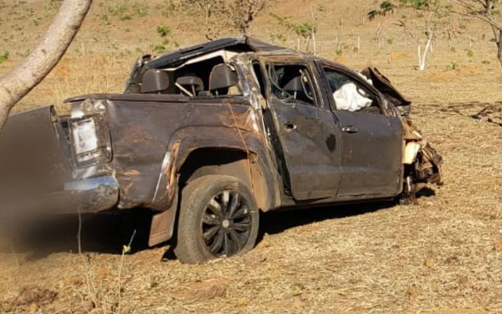 Um homem de 40 anos morreu e uma jovem, de 23, ficou ferida após uma caminhonete capotar na GO-010, entre Silvânia e Vianópolis. Imagens mostram que o veículo ficou destruído.