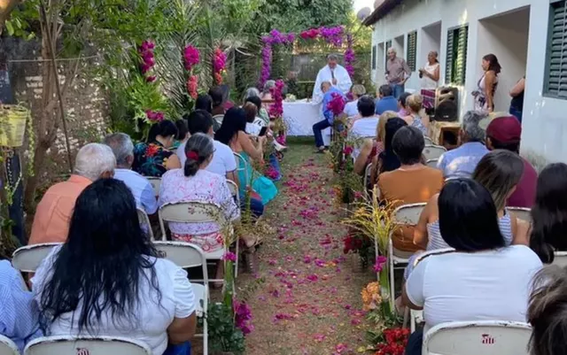 “Eles moram no condomínio e namoraram por 4 meses, aí pediram pra gente organizar o casamento porque eles queriam uma benção do padre para ele passar da casinha dele pra casinha dela. Foi muito bonito e marcante”, disse Cacilda.