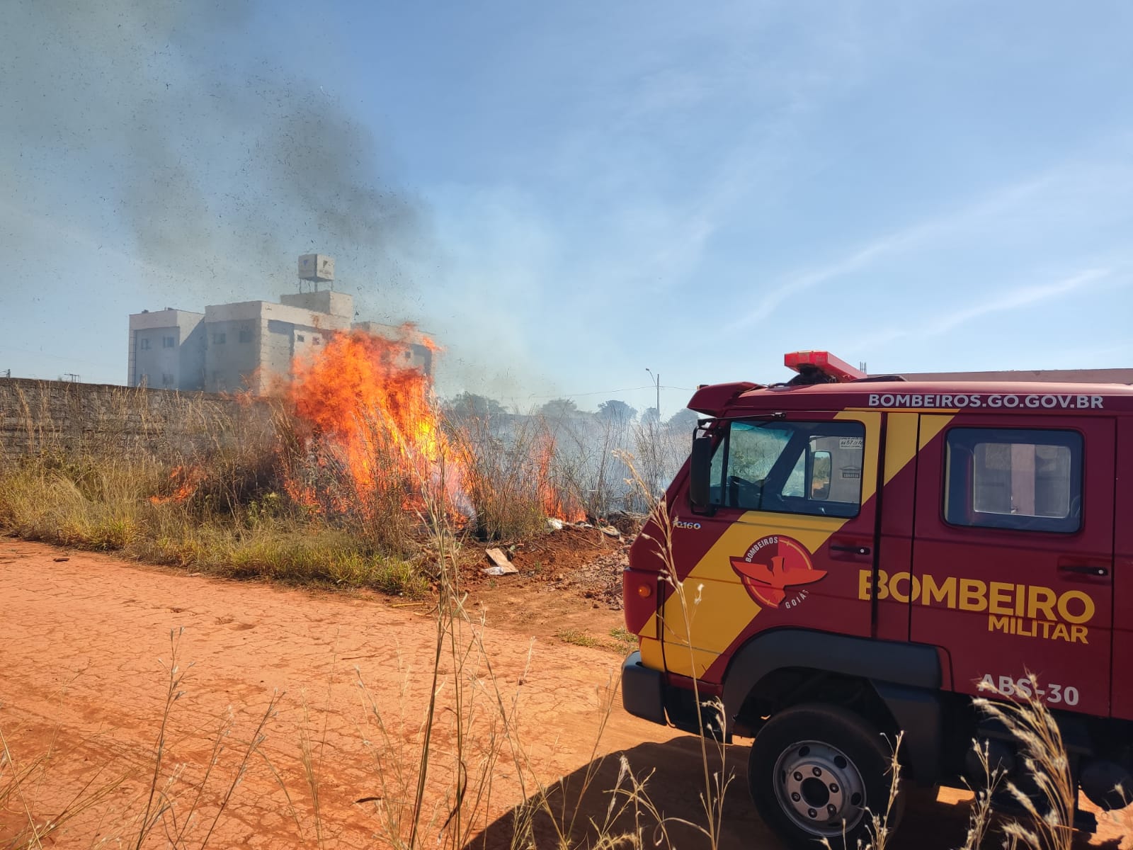 🗣 A Equipe de Combate a Incêndio do 19º BBM de Formosa foi acionada para debelar um incêndio em terreno baldio próximo ao Colégio IESGO.