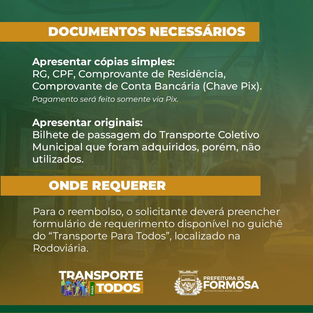 (É necessário a apresentação do bilhete de passagem do Transporte coletivo Municipal que foram adquiridos, porém não utilizados.) 🎫💚